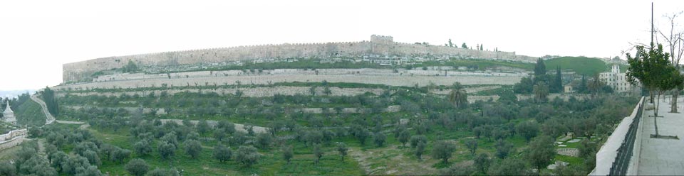 This is the Kidron Valley as I faced the Golden Gate (right of center along the wall) with the Mt. of Olives behind me. In 2000 the ground near the Golden Gate collapsed revealing a gate below the modern one. The hole was filled as this area is a Moslem graveyard. The southwestern portion of this wall (left) was close to first century Herodian (Second Temple era) foundations of the outer wall of Jerusalem that remain while other parts of the modern wall of Jerusalem lack ancient foundations.