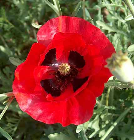 Jesus taught: "Consider the wildflowers, they do not toil or spin, yet Solomon in all his splendor was not arrayed like one of these." From a fragment of papyrus found in Oxyrhyncus, Egypt and published during the 19th century: Jesus said, "Do not worry from dawn to dusk and from dusk to dawn about [what food] you [will] eat, [or] what [clothing] you will wear. [You are much] better than the [lilies], which [neither] card nor spin. And for your part, what [will you wear] when you have no clothing? Who would add to your stature? It is he who will give you your clothing." The people of his day got their clothes from those who were spinning yarn from wool, goat's hair, camel's hair, cotton, or flax (linen). They did not have cheap dyes to match the vivid colors of some these elegantly arrayed anemones that turned towards the light clothed in vivid attire. Many people worried alot about being able to afford their clothes in those days. These wildflowers that sprang up after the winter rains did not lack a beautiful appearance.
